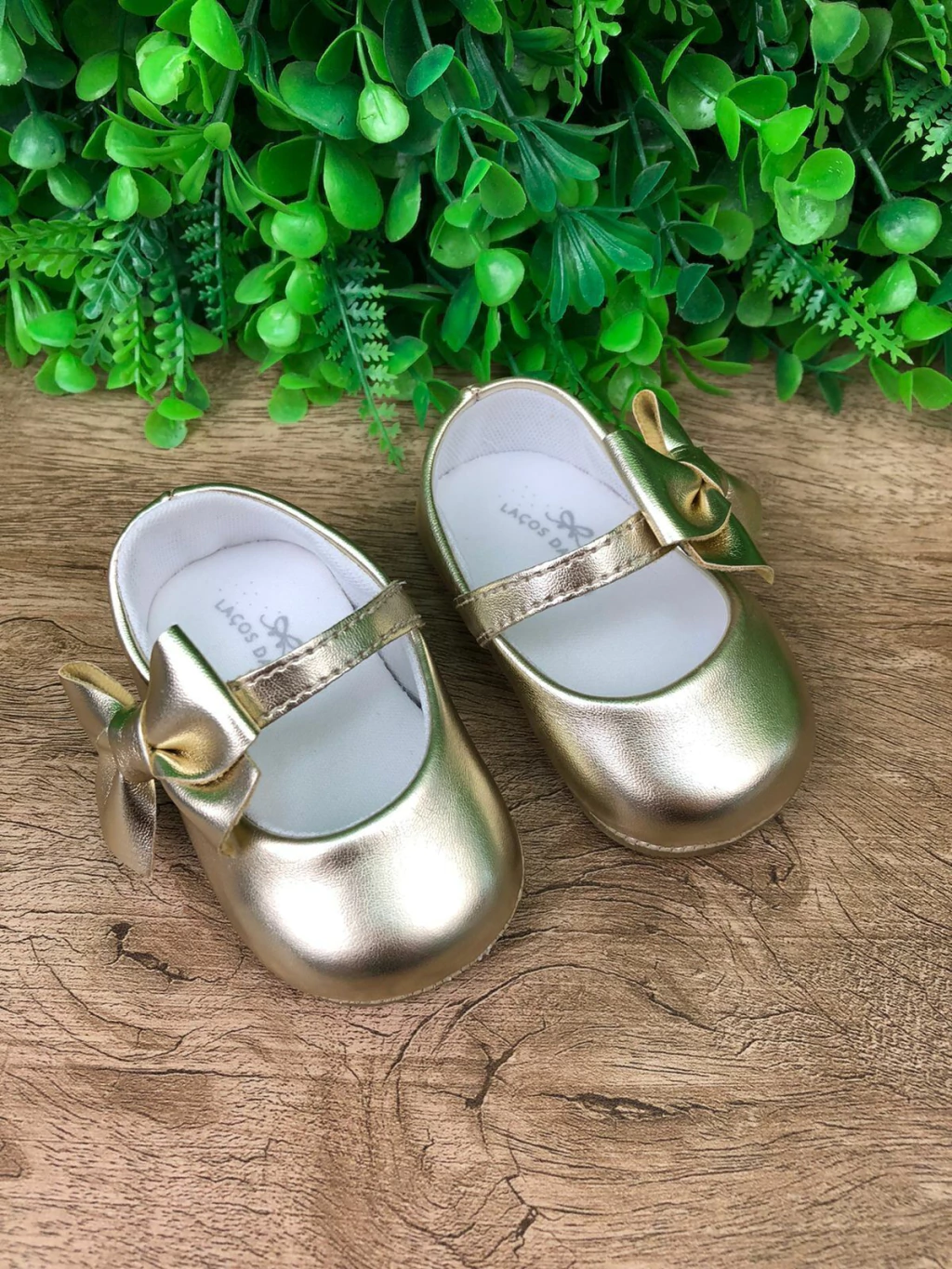 Couro sintético e solado antiderrapante.